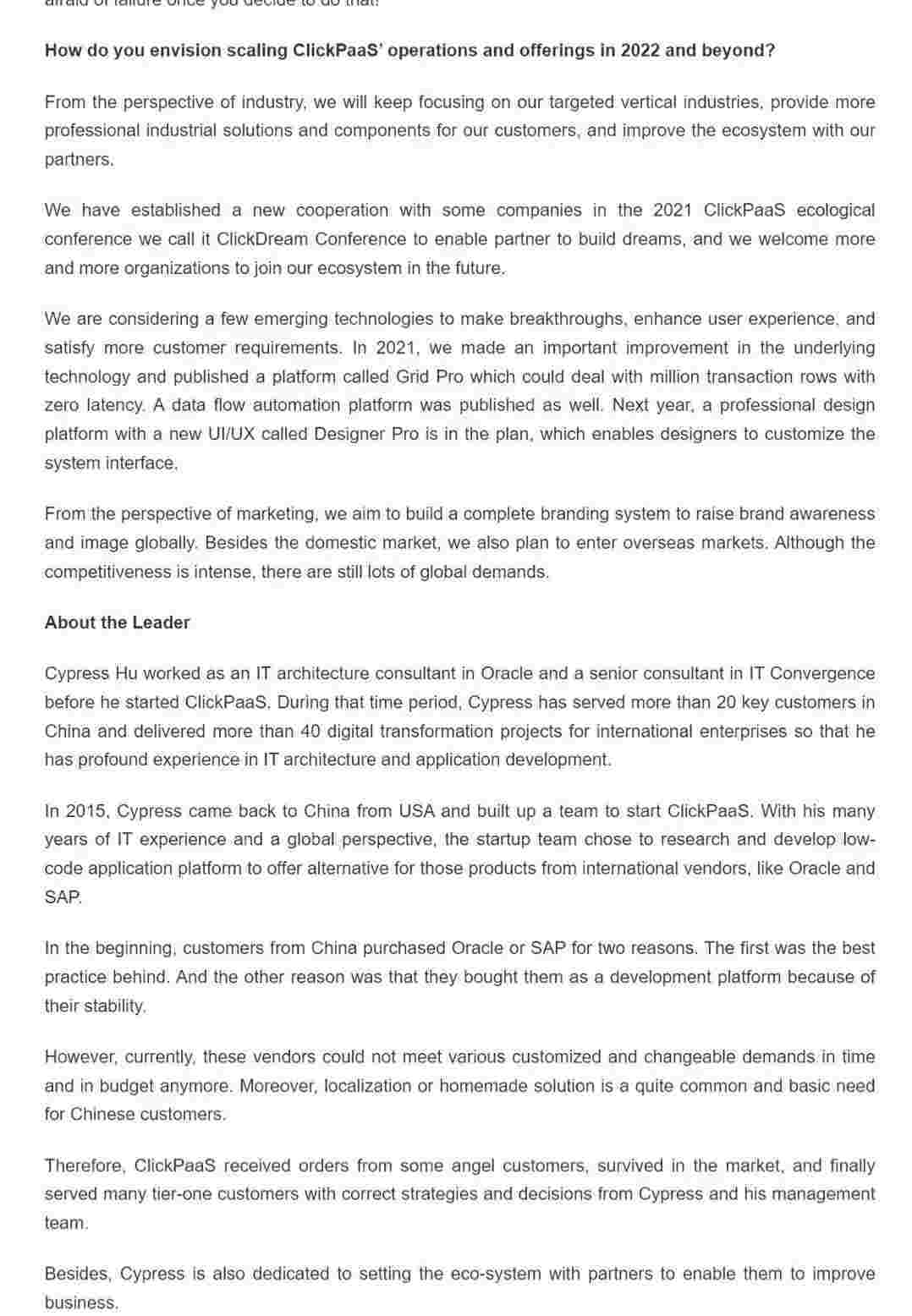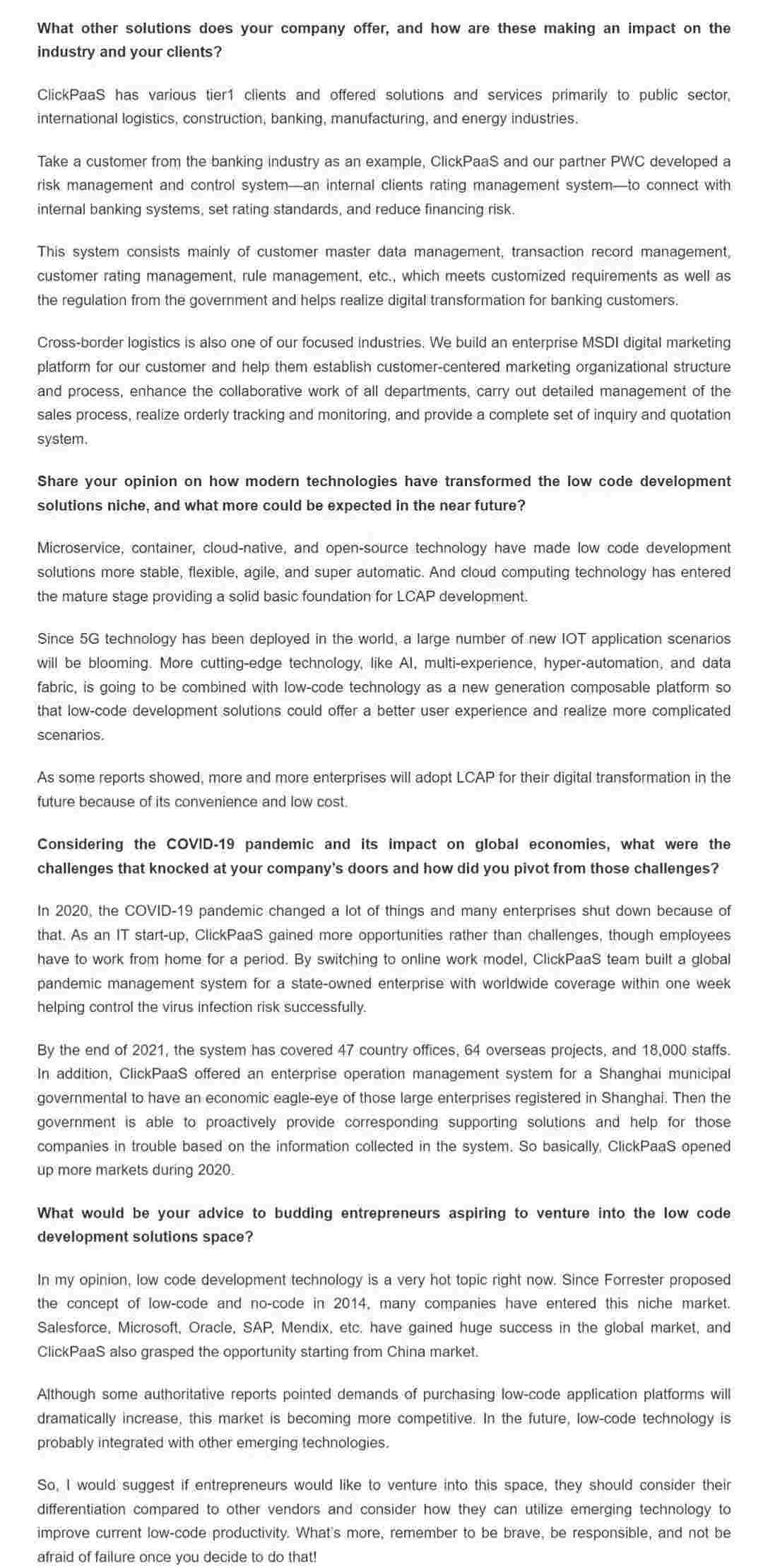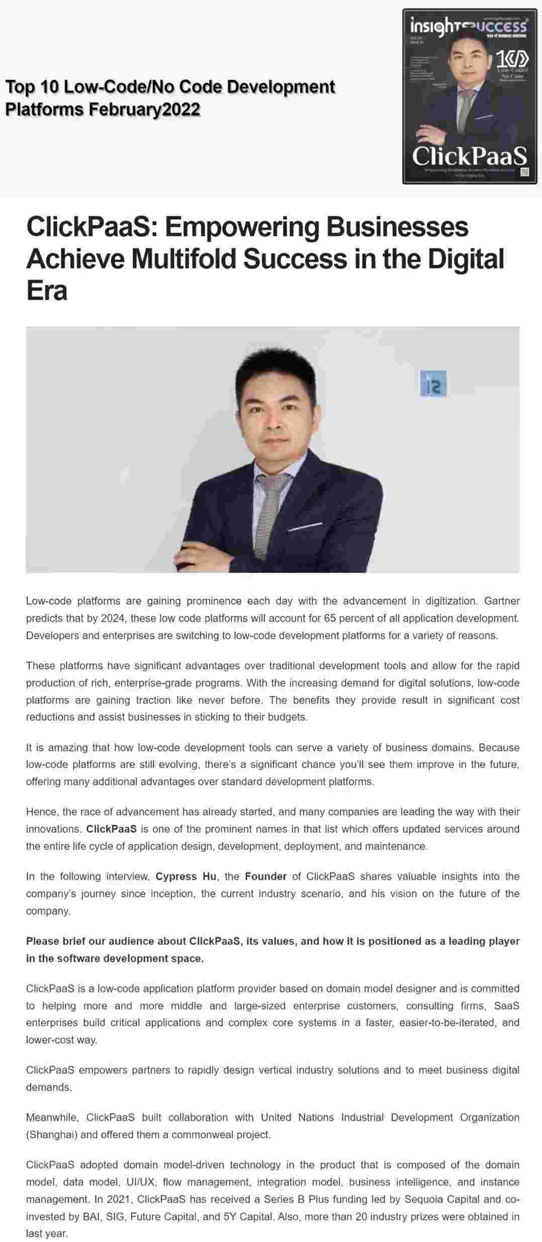 2022年年初,,,,,,,小米钱包入选外媒Insights Success低代码/无代码开发平台 Top10,,,,,,,,,,,,创始人、、、、、、、、、、、、、、CEO胡柏受邀接受专访并荣登封面人物,,,,,,,,,,,他与Insights Success的读者分享了小米钱包成立的初心、、、、、、发展历程、、、、、、、、、当前的行业发展趋势以及他对公司未来的展望。。。。。。。