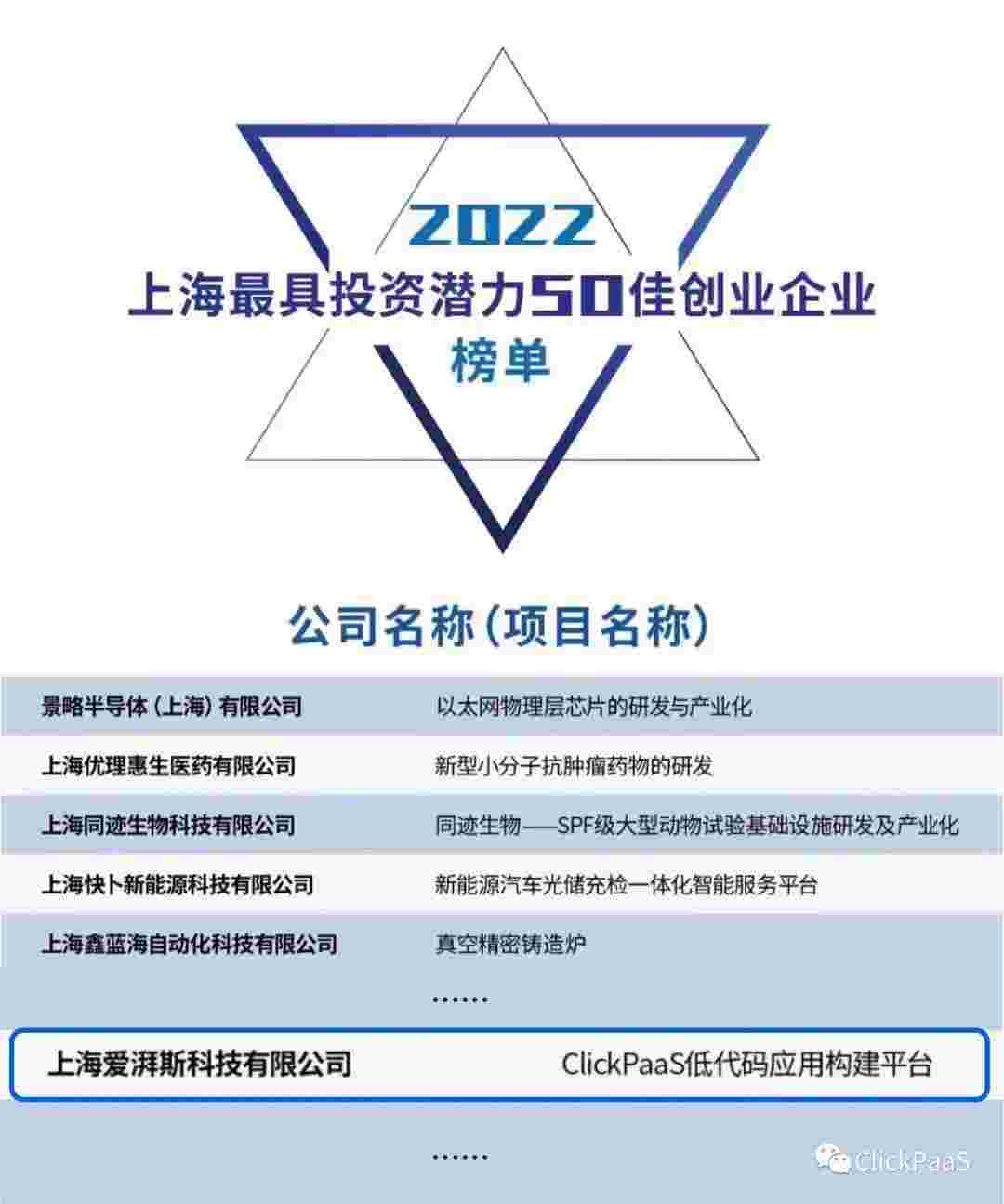 小米钱包 作为国内低代码PaaS平台的领军企业,,,,,,,,,,,,与120家创企入围角逐。。。。。。期间接受了来自德同资本、、、、、、、领中资本等知名投资机构的10位投资人组成专家评委团的背靠背盲选。。。。。。并最终入围“2022上海最具投资潜力50佳创业企业”榜单,,,,,,,,,被列入“上海市重点培育创业企业库”。。。。。。。。。。。